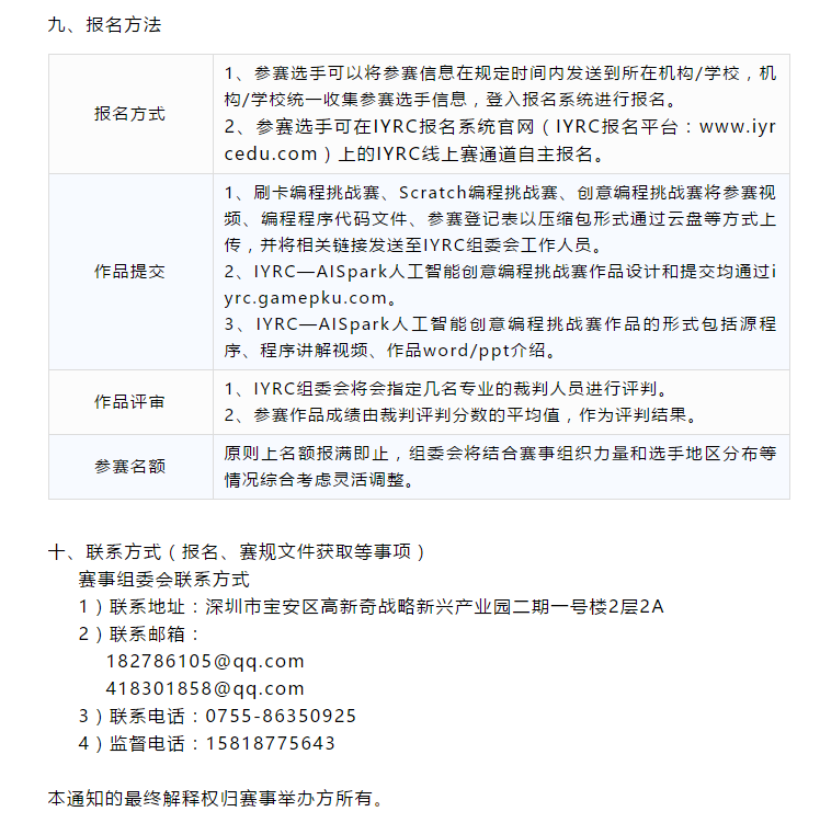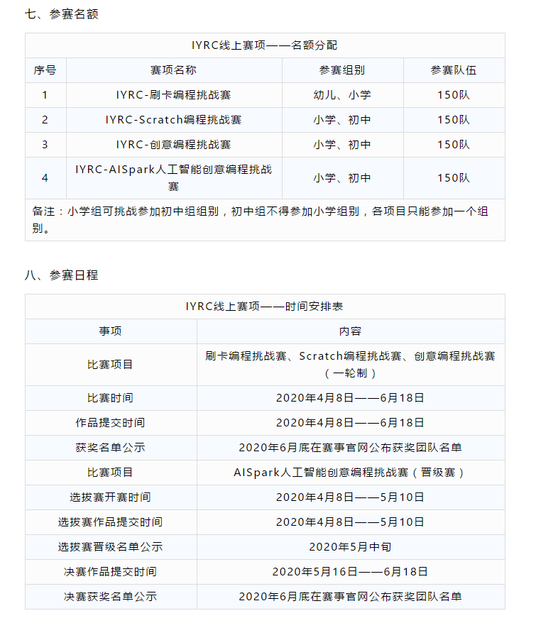 綜合考慮到參賽選手培訓計劃及后續組織,2020IYRC國際青少年機器人競賽(中國)首屆線上賽,IYRC組委會經討論決定了本屆比賽賽程安排,具體如下: