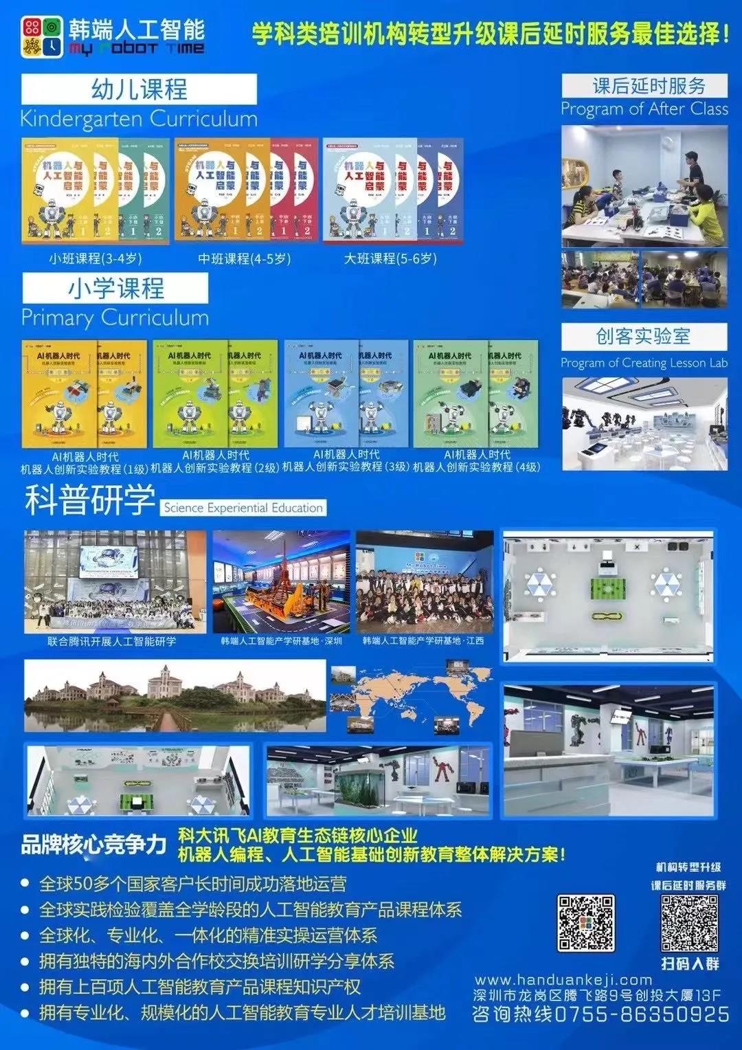 韓端機器人編程、人工智能基礎(chǔ)創(chuàng)新教育整體解決方案|學(xué)科類培訓(xùn)機構(gòu)轉(zhuǎn)型升級、學(xué)校課后延時服務(wù)的優(yōu)選合作伙伴!