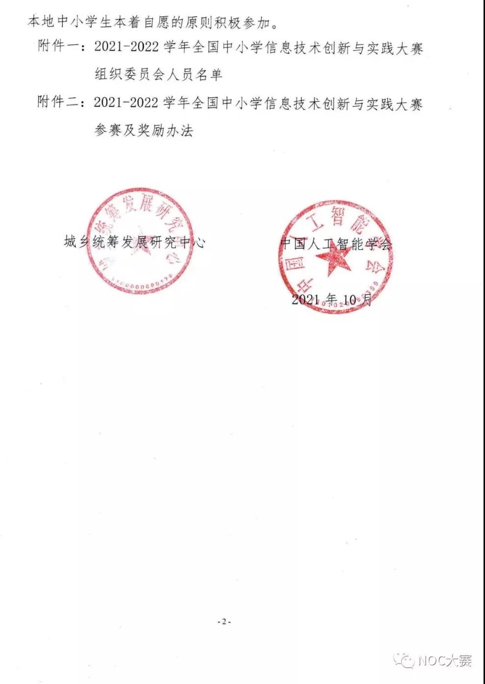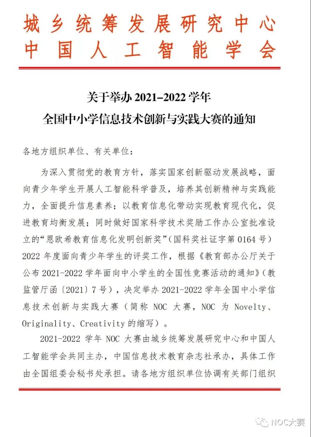 關于舉辦2021-2022學年全國中小學信息技術創新與實踐大賽(第20屆NOC)的通知