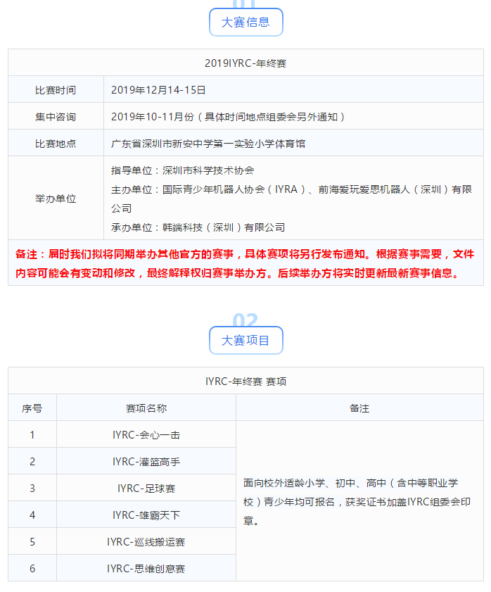 關于國際青少年機器人競賽“2019IYRC-年終賽”的參賽通知!