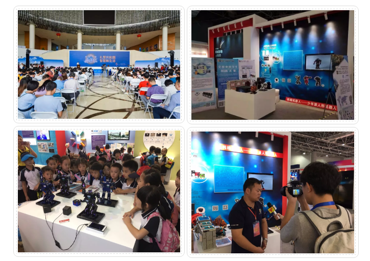 我司受邀參加本次活動,其中有少年派人形機器人、未來派創客套裝、機器魚等產品亮相活動現場,受到眾多領導的肯定和參觀觀眾的追捧。隨后,廣東省科學技術協會科普部吳仕高部長、深圳市科學技術協會科普部陳志遠副部長等領導率隊蒞臨韓端調研指導。