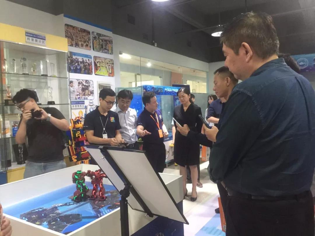 隨后,作為廣東省科普教育基地,韓端科技科普研學基地——機器人與人工智能體驗館被此次大會選定為調研觀摩的基層示范科普基地,全程參與接待了出席華中華南科普工作交流研討會的領導在科普基地的調研觀摩座談活動。在調研座談中,與會領導對韓端科技在科普教育事業領域所做工作紛紛給予了充分肯定,并表示將大力支持像韓端科技這樣有創新精神和社會責任感的企業科普基地在全國分享科普經驗、推廣科普教育模式,為全國科普教育事業做出更大貢獻。